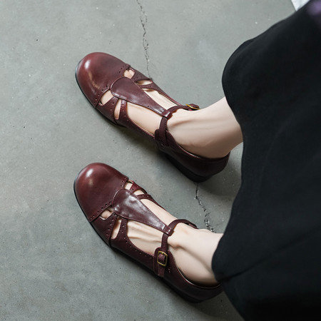 头层牛皮 内里羊皮 鞋垫牛皮 极简复古僧侣鞋包子鞋26春新款
